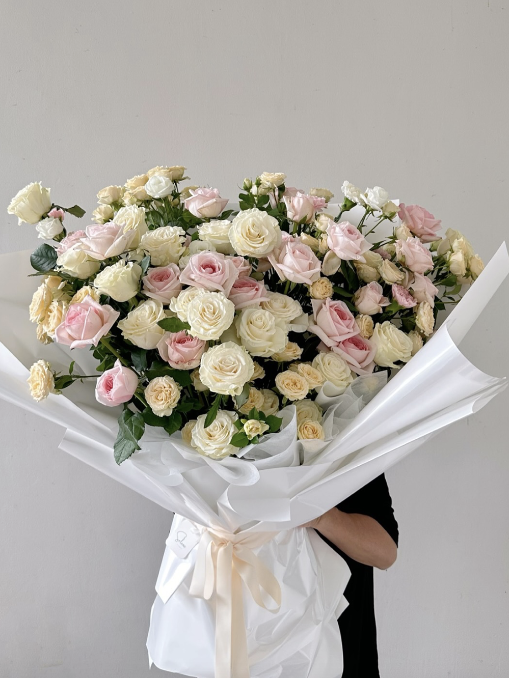 ช่อดอกกุหลาบหลากสี จัดเรียงอย่างประณีตในโทนละมุนสบายตา สื่อถึงความรัก ความอ่อนโยน และความห่วงใย เหมาะสำหรับเซอร์ไพรส์คนรักหรือใช้ในโอกาสพิเศษทุกประเภท